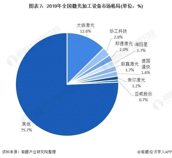 400-666-4000 全國(guó)激光加工設(shè)備市場(chǎng)格局較為分散,全國(guó)激光加工設(shè)備TOP8占比僅為24.3%,市場(chǎng)集中度較低,排名首位的大族激光市占率也僅為12.6%,但是高于占比排名第二位的華工科技(占有率僅為2.8%)約10個(gè)百分比,呈現(xiàn)斷崖式領(lǐng)先。