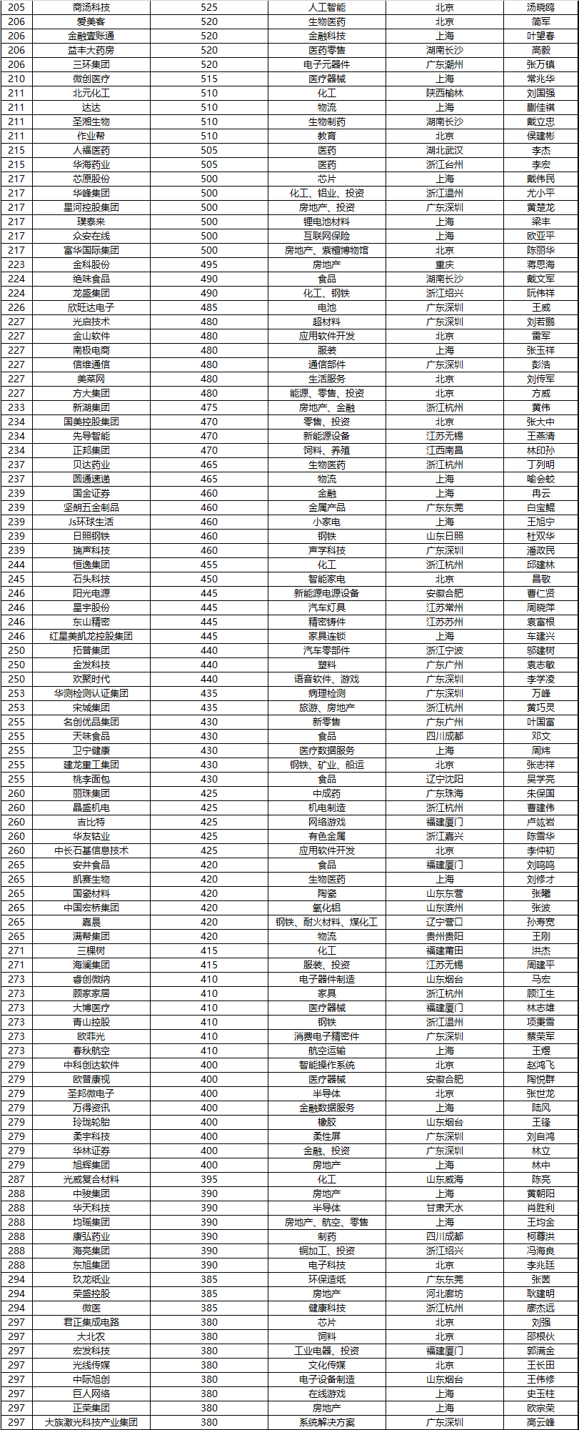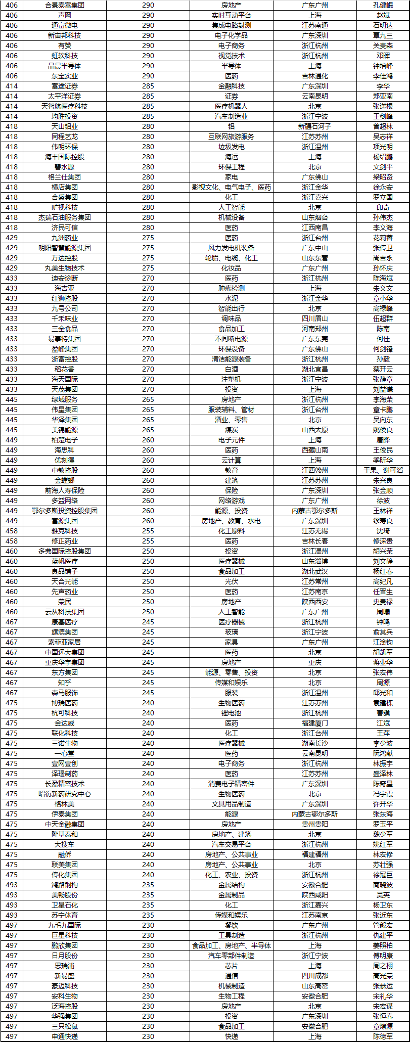 500強民營企業(yè)去年銷售額總和22萬億元,是去年中國GDP的五分之一,超過英國一年的GDP;共擁有員工970萬人。胡潤表示:“要上中國500強榜單并不容易,今年門檻比去年高了90億元,達到230億元,但仍然有120家企業(yè)新上榜,500強的平均價值比去年增長了55%,達到1100億元。上榜企業(yè)在各個領域已經達到世界級。”