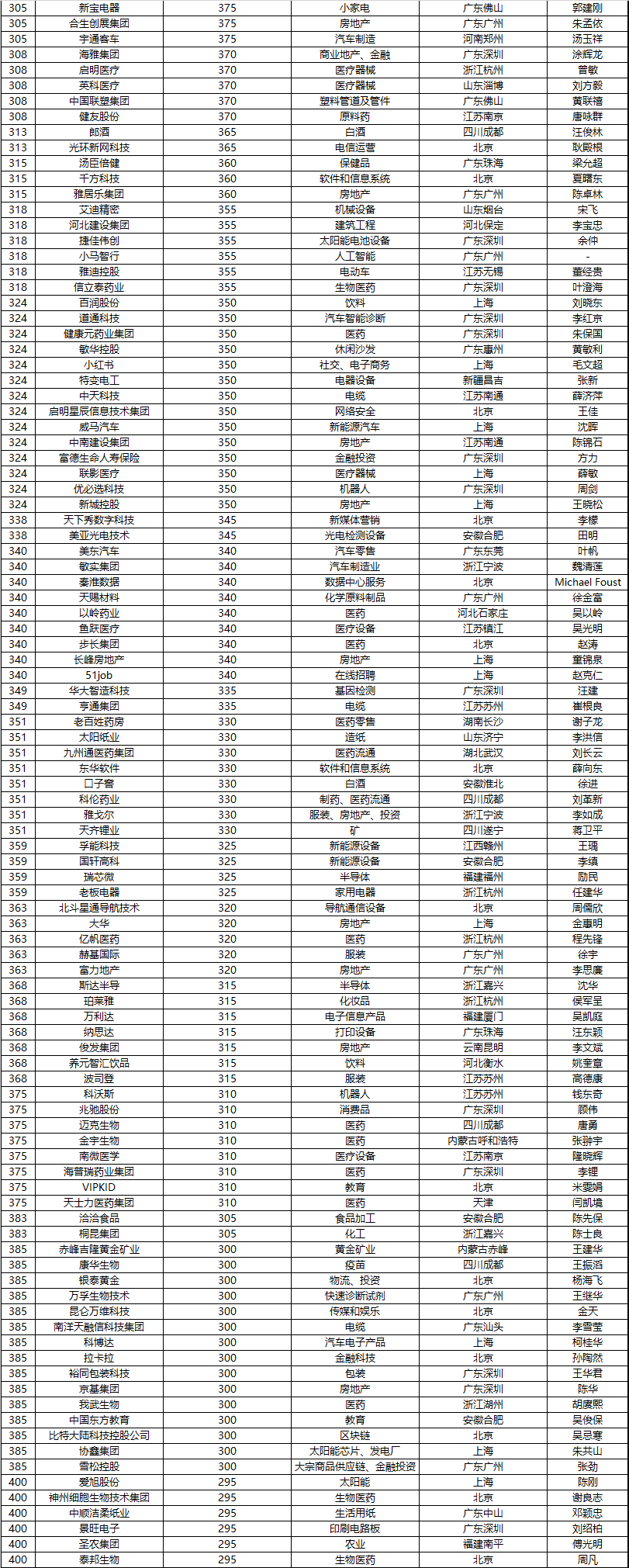 11月25日,胡潤研究院最新發(fā)布了《胡潤中國500強民營企業(yè)》,公布了2020年中國排名靠前的500強民營企業(yè)。據胡潤研究院透露,本年胡潤500強榜單的上榜門檻為230億元,相比較去年提高了90億元,即64%。本次上榜企業(yè)的總價值共為56萬億元,相比去年增加了20萬億元,相當于去年中國GDP的近六成;企業(yè)的平均市值更是達到1100億元,相比較去年增長了390億元,年增長55%,創(chuàng)歷史新高。