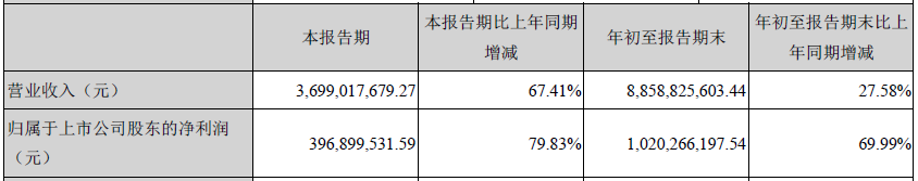 10月25日晚,大族激光科技產業集團股份有限公司(以下簡稱“大族激光”或“公司”)發布了2020年第三季度報告。報告顯示,大族激光第三季度營收36.99億元,同比增長67.41% ;歸屬于上市公司股東的凈利潤3.97億元,同比增長79.83%。